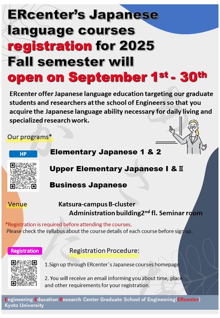 ERcenter’s Japanese language courses registration for 2025 Fall semester will open on 1st.September